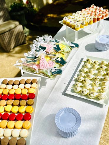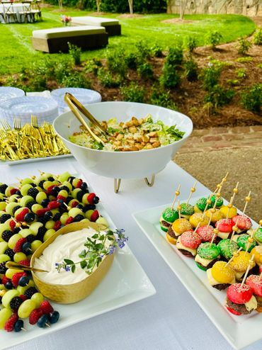 Catering Cart can contact and acquire and hire florists, linens, balloon artists, cotton candy vendors, live painters, caricature artists, DJ's, and of course we will handle the set up, execution, service of catered foods, non alcoholic beverages and mocktails, desserts, and bar services.
